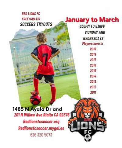 Red Lions fc is a 501(c)(3) Nonprofit organization that serves our youths in the City of Rialto, CA and surrounding areas. We are in affiliation with CalSouth, CSL . Our coaches are licensed with U.S.Soccer .Respecto a nosotros:Red Lions fc es un organizacion organizacion sin fines de lucro, que sirve a
